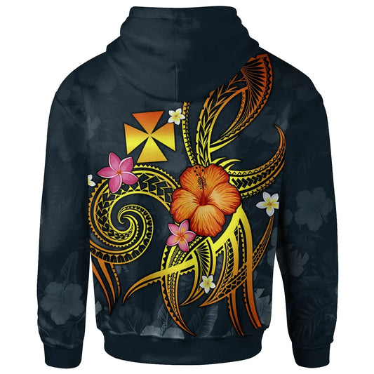 Wallis and Futuna Hoodie - Fish With Plumeria Flowers Style