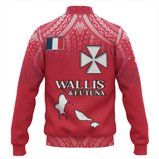 Wallis And Futuna Baseball Jacket Flag Color With Traditional Patterns