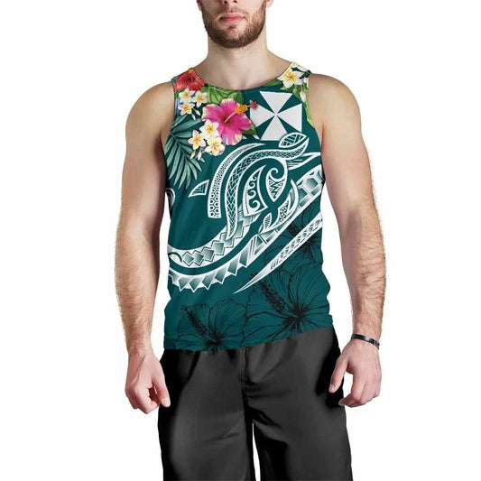 Wallis and Futuna Polynesian Men Tank Top - Summer Plumeria (Turquoise)