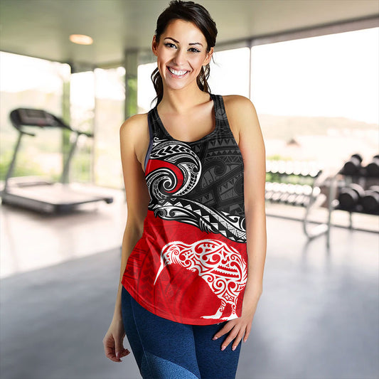 New Zealand Women Tank Maori Tribal Design Flag With Kiwi Bird