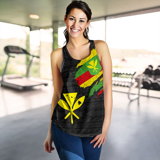 Hawaii Women Tank Polynesia Tribal Kanaka Maoli Flag Crack Style