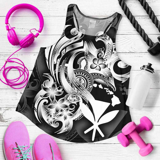Hawaii Polynesian Women Racerback Tank - Kanaka Maoli White Shark Polynesian Tattoo