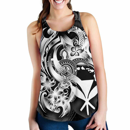 Polynesian Hawaii Women Racerback Tank - Kanaka Maoli White Turtle