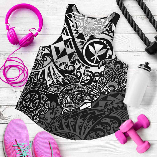 Polynesian Hawaii (Kanaka Maoli) Women Racerback Tank - Black Turtle Hibiscus Flowing