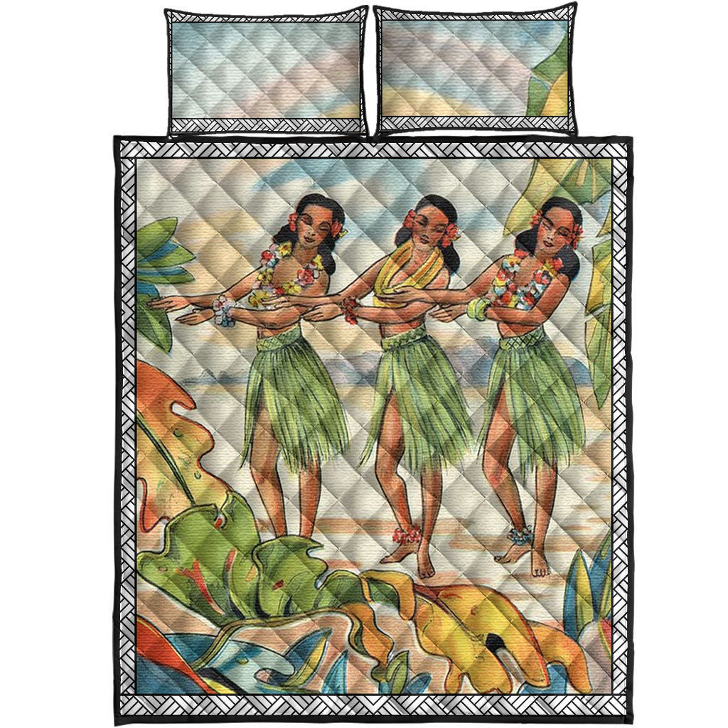 Aloha Nui Loa From Hawaii Hula Girls Quilt Bed Set