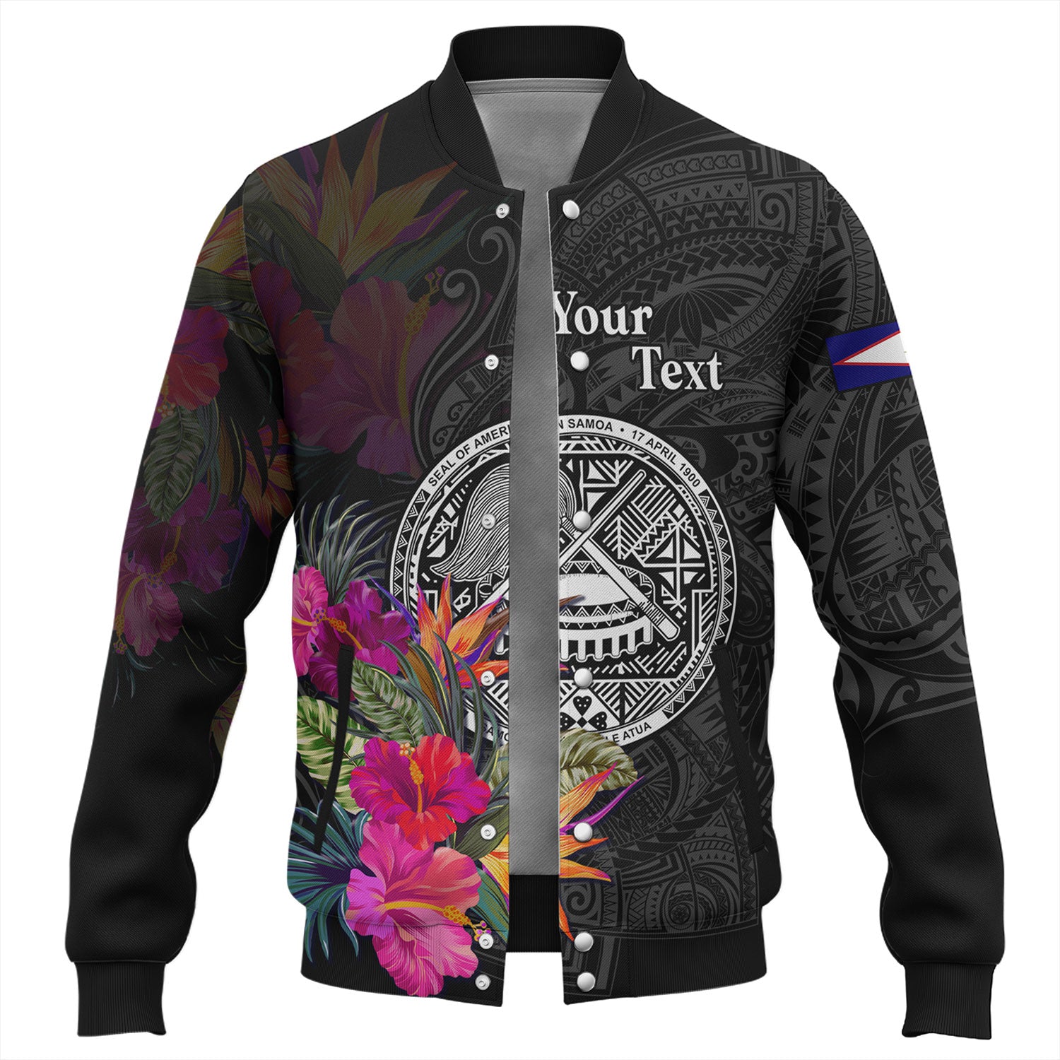 American Samoa Baseball Jacket Custom Polynesian Pattern Tropical Floral Design