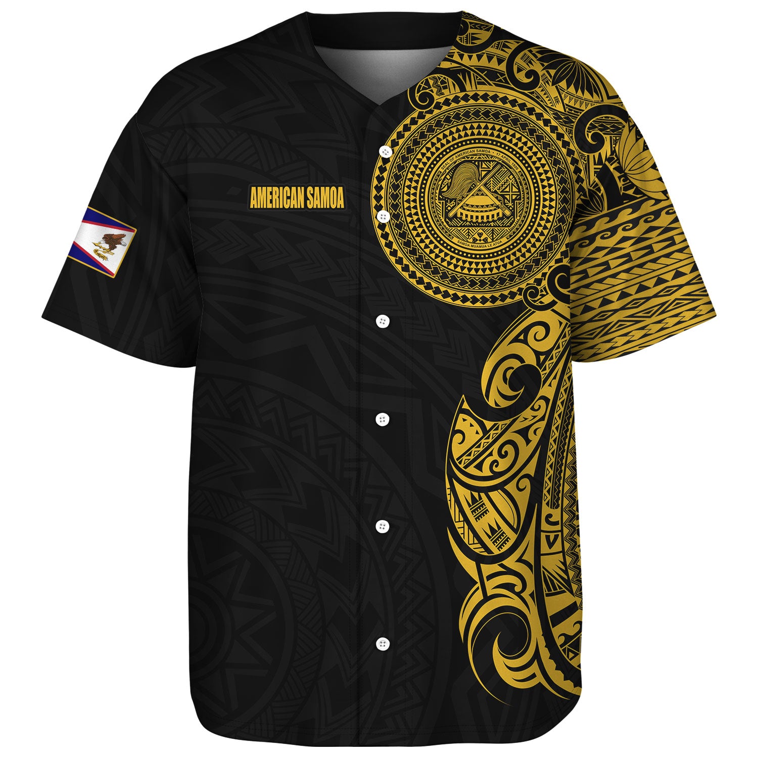 American Samoa Baseball Shirt Custom Polynesian Half Sleeve Gold Tattoo With Seal Black