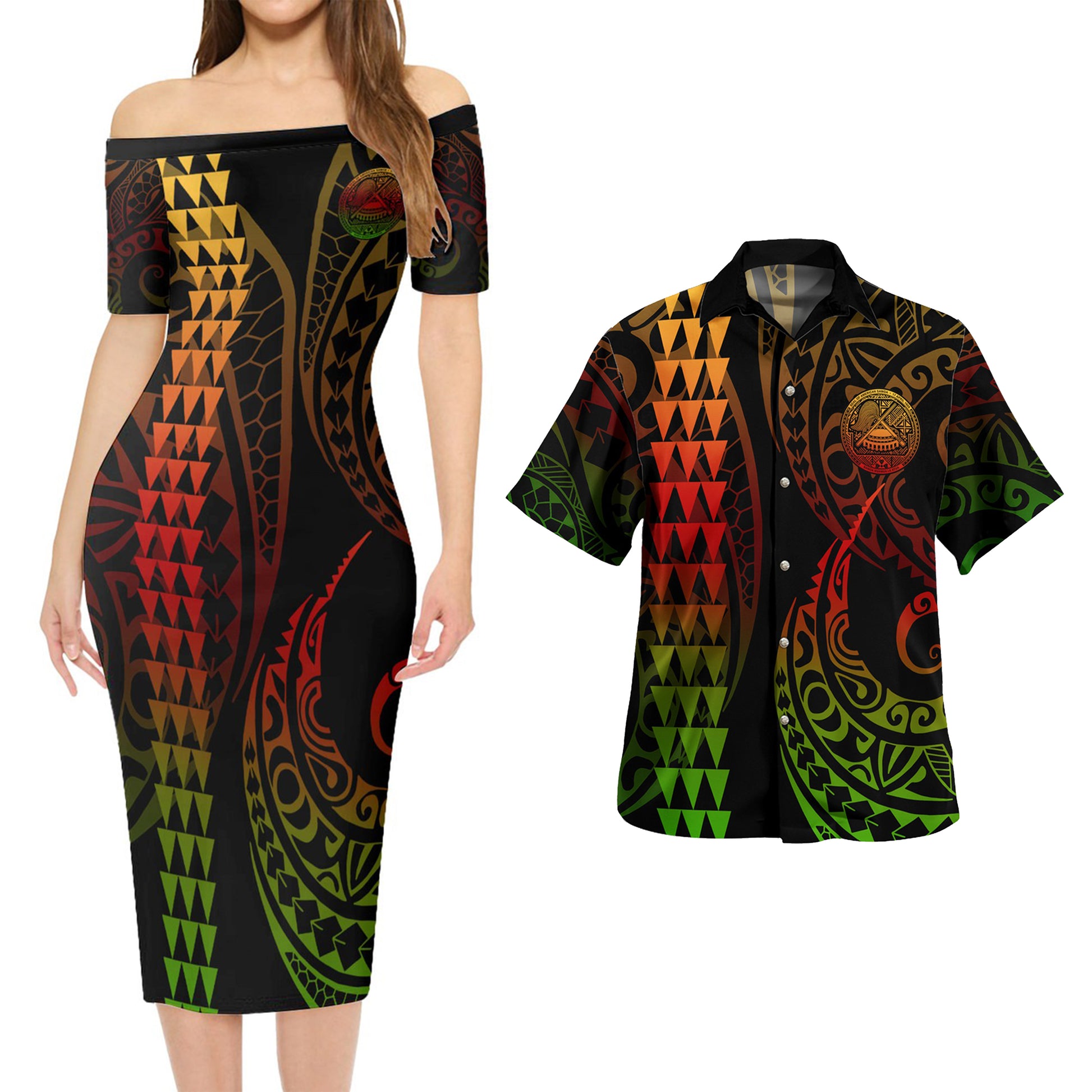 American Samoa Combo Short Sleeve Dress And Shirt Kakau Style Reggae