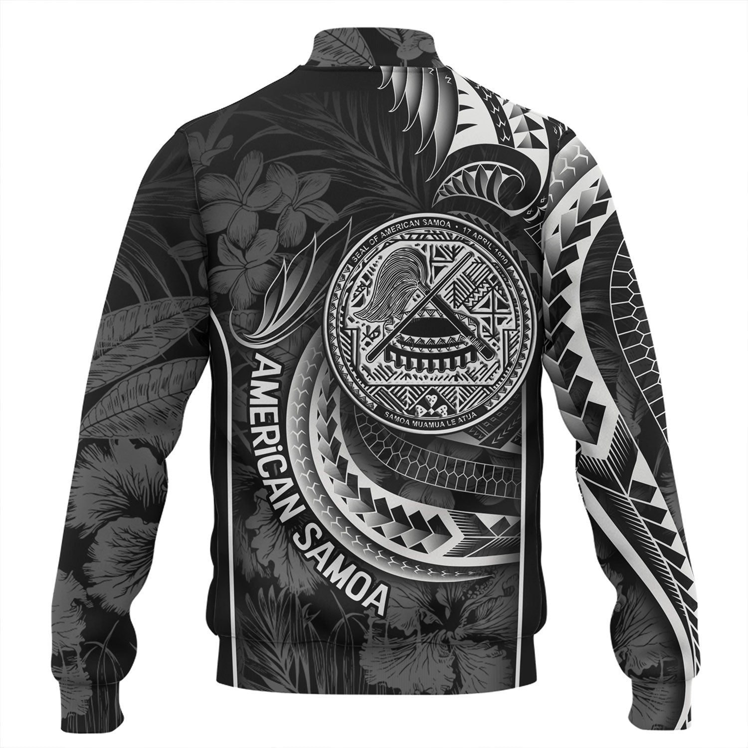 American Samoa Baseball Jacket Seal Tribal Patterns Tropical Flowers Curve Style