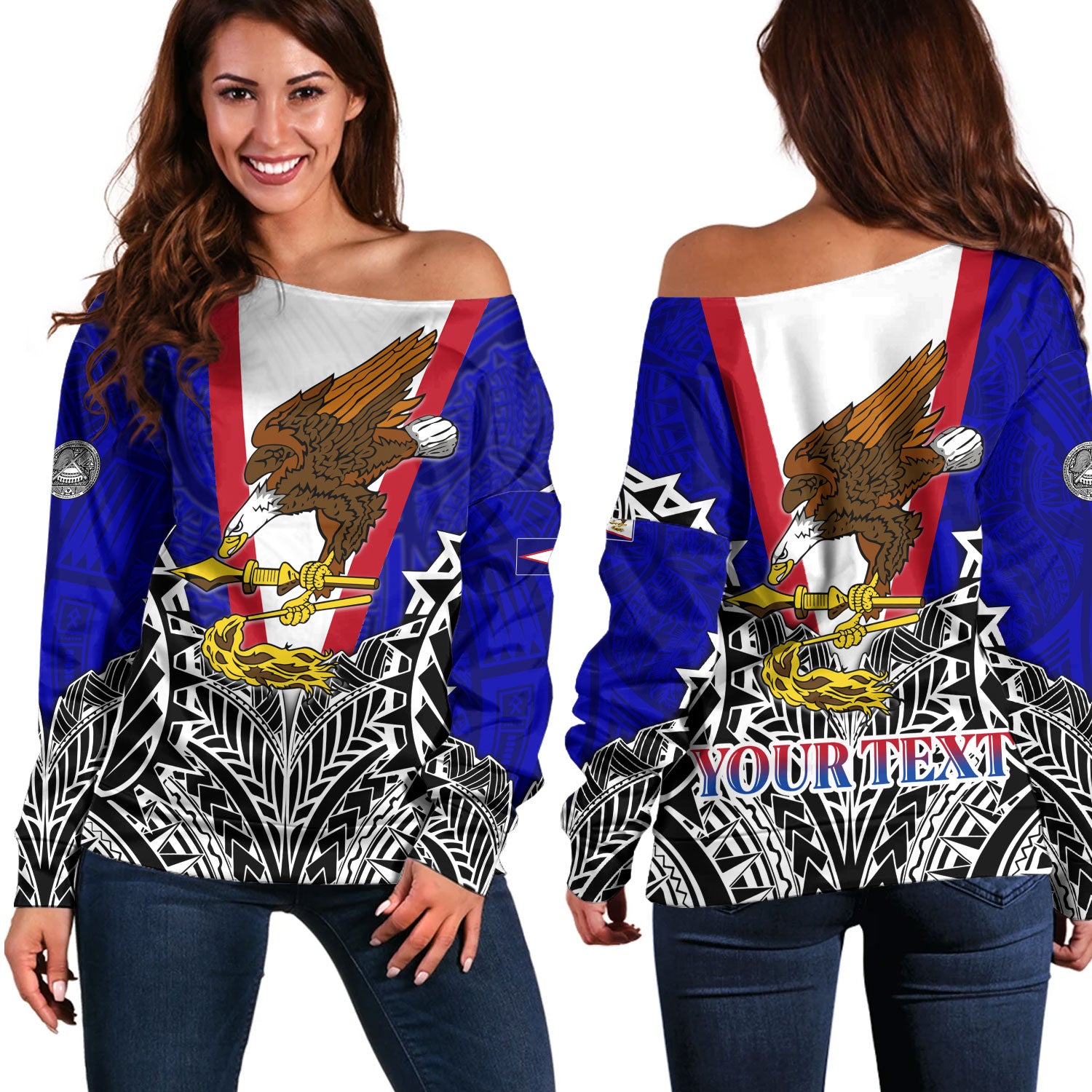 American Samoa Custom Personalised Off Shoulder Sweatshirt American Samoa Flag With Eagle Style