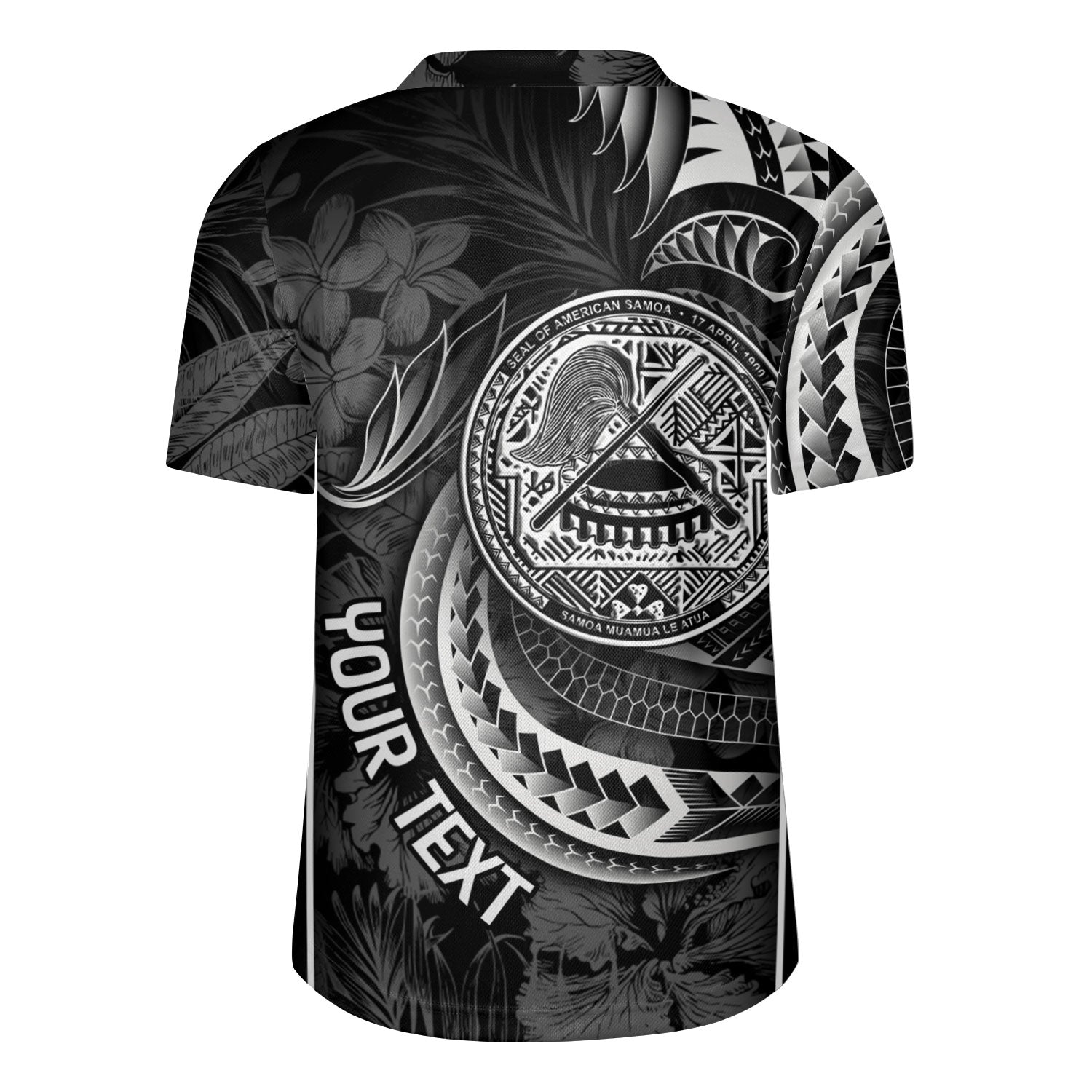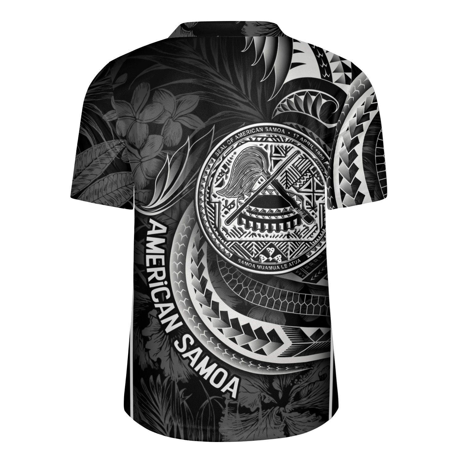 American Samoa Rugby Jersey Seal Tribal Patterns Tropical Flowers Curve Style