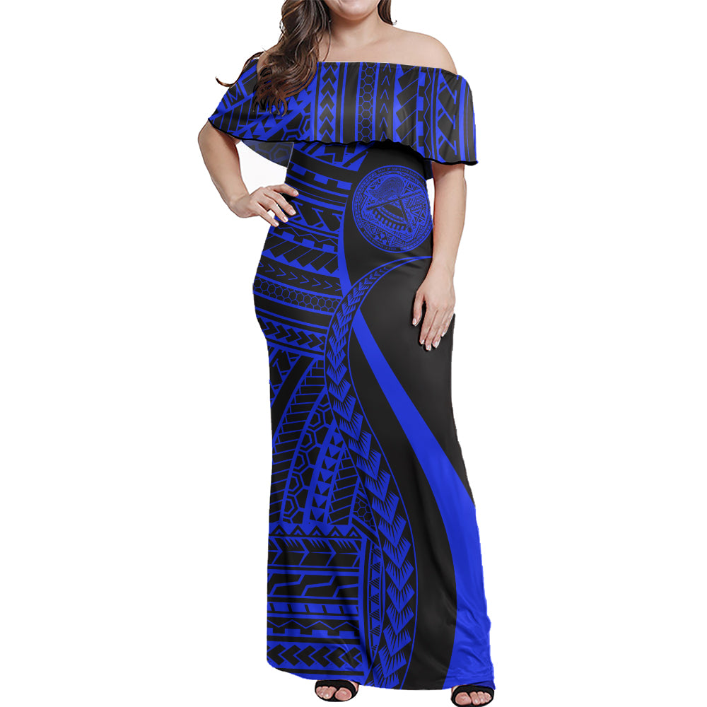American Samoa Custom Personalised Woman Off Shoulder Long Dress Polynesian Tentacle Tribal Pattern