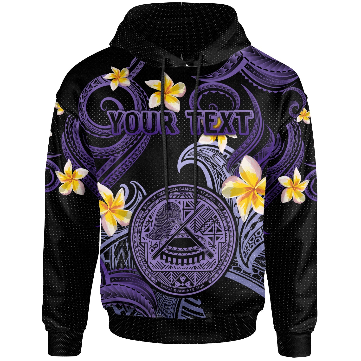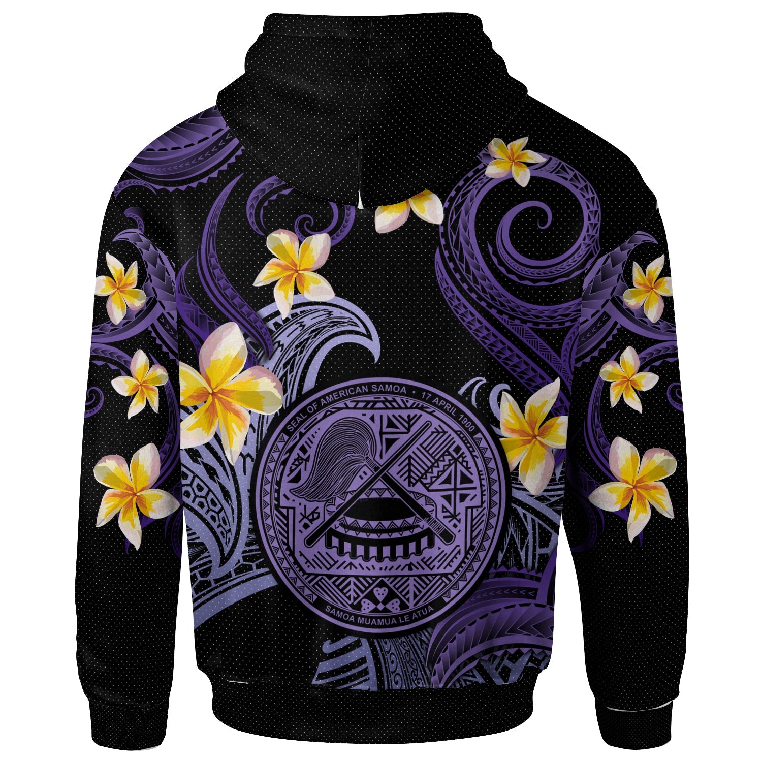 American Samoa Hoodie - Custom Personalised Polynesian Waves with Plumeria Flowers (Purple)