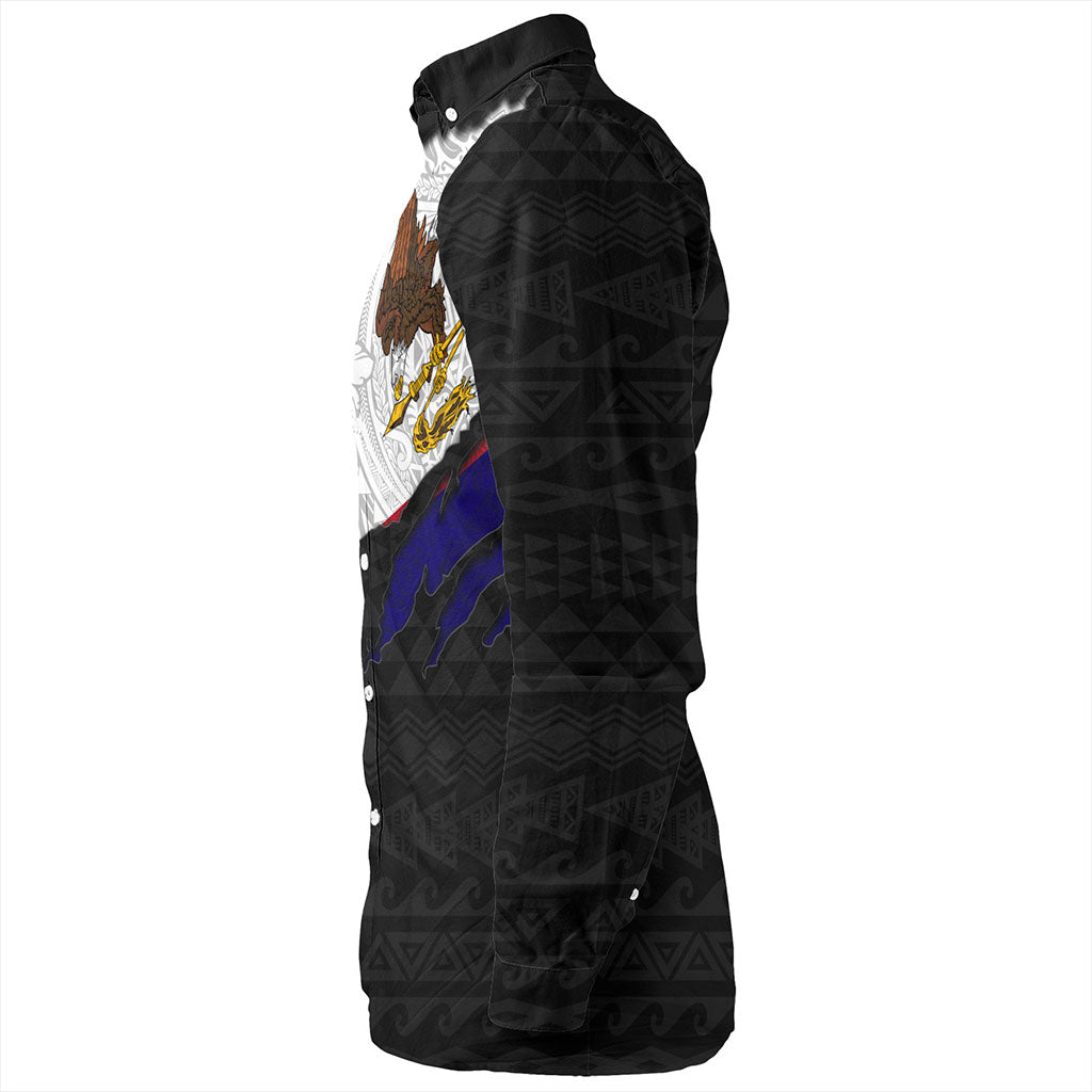 American Samoa Long Sleeve Shirt Tribal Polynesia Flag Crack Style