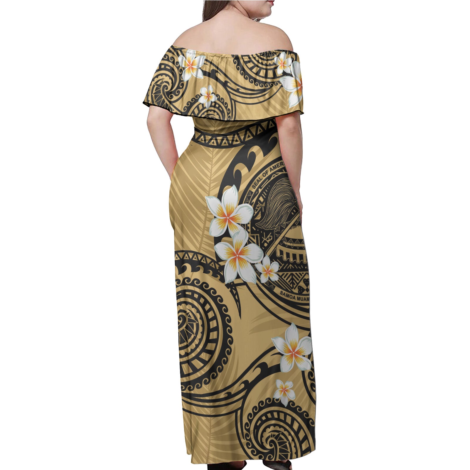 American Samoa Off Shoulder Long Dress Plumeria Flowers Tribal Motif Yellow Version