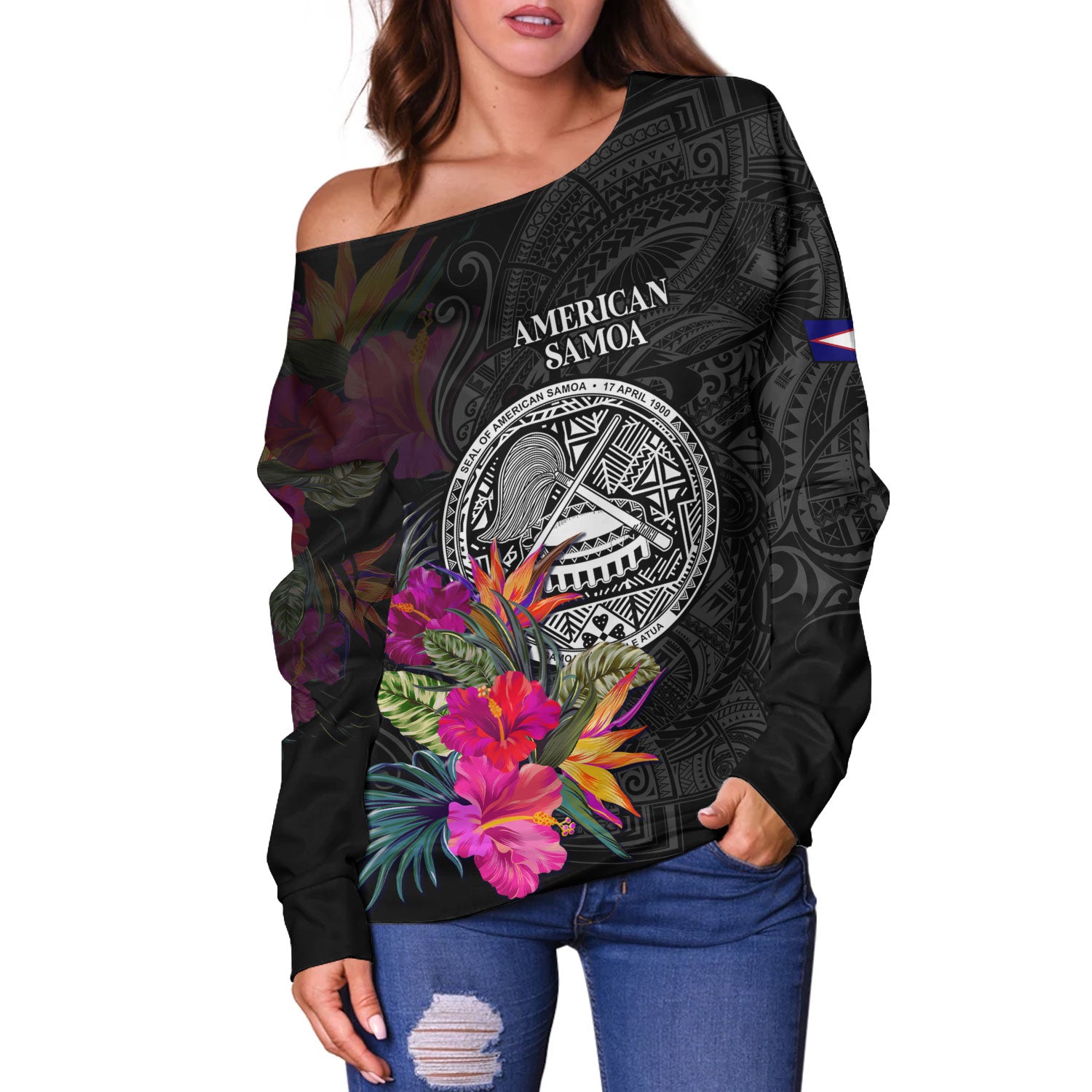 American Samoa Off Shoulder Sweatshirt Custom Polynesian Pattern Tropical Floral Design
