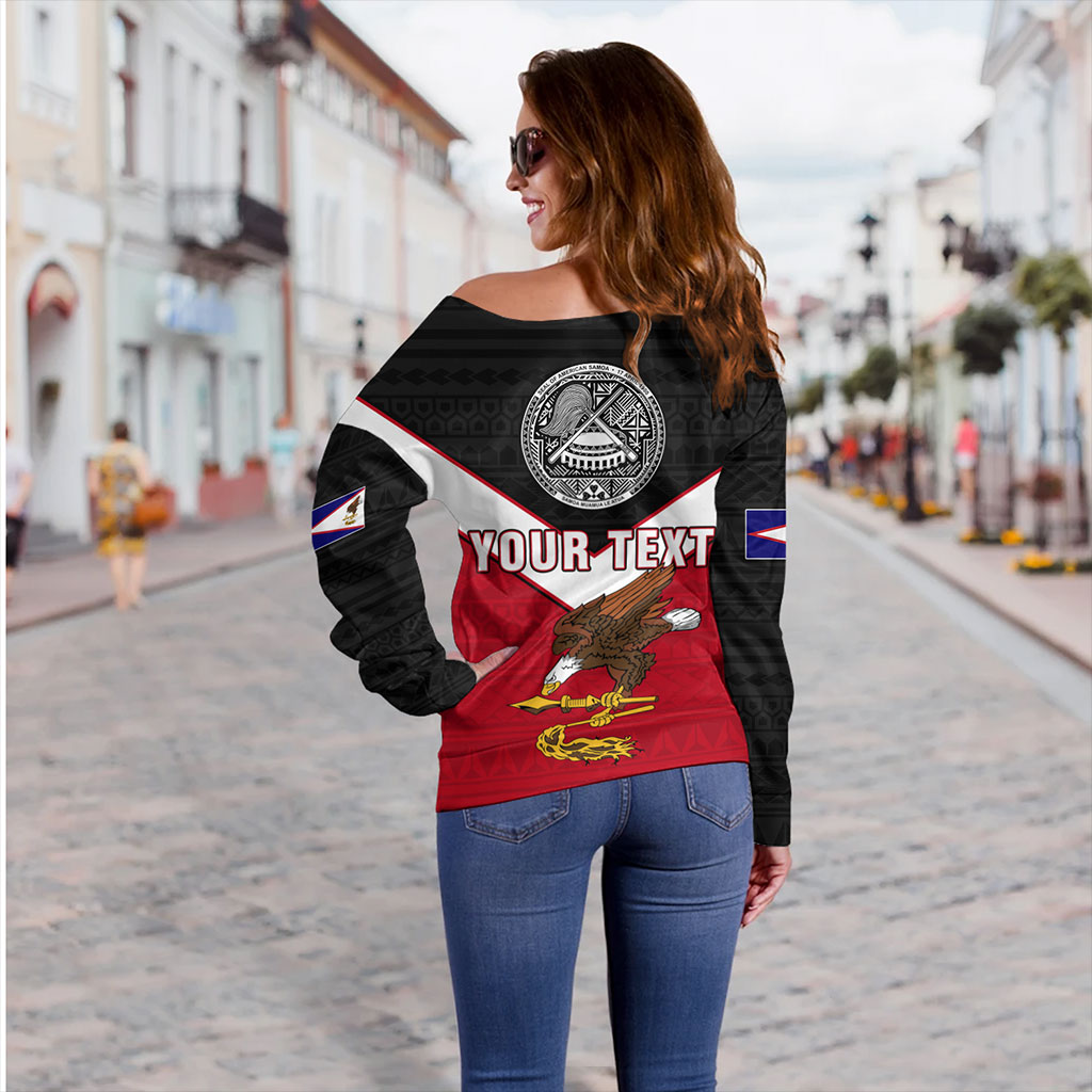 American Samoa Off Shoulder Sweatshirt Custom Polynesian Tribal Sport Style