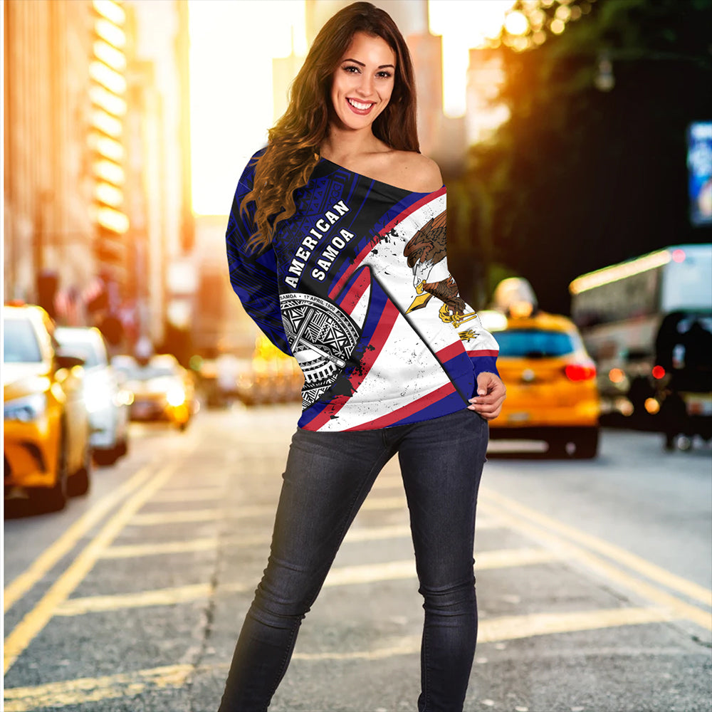 American Samoa Off Shoulder Sweatshirt Polynesia Flag Shoul Style