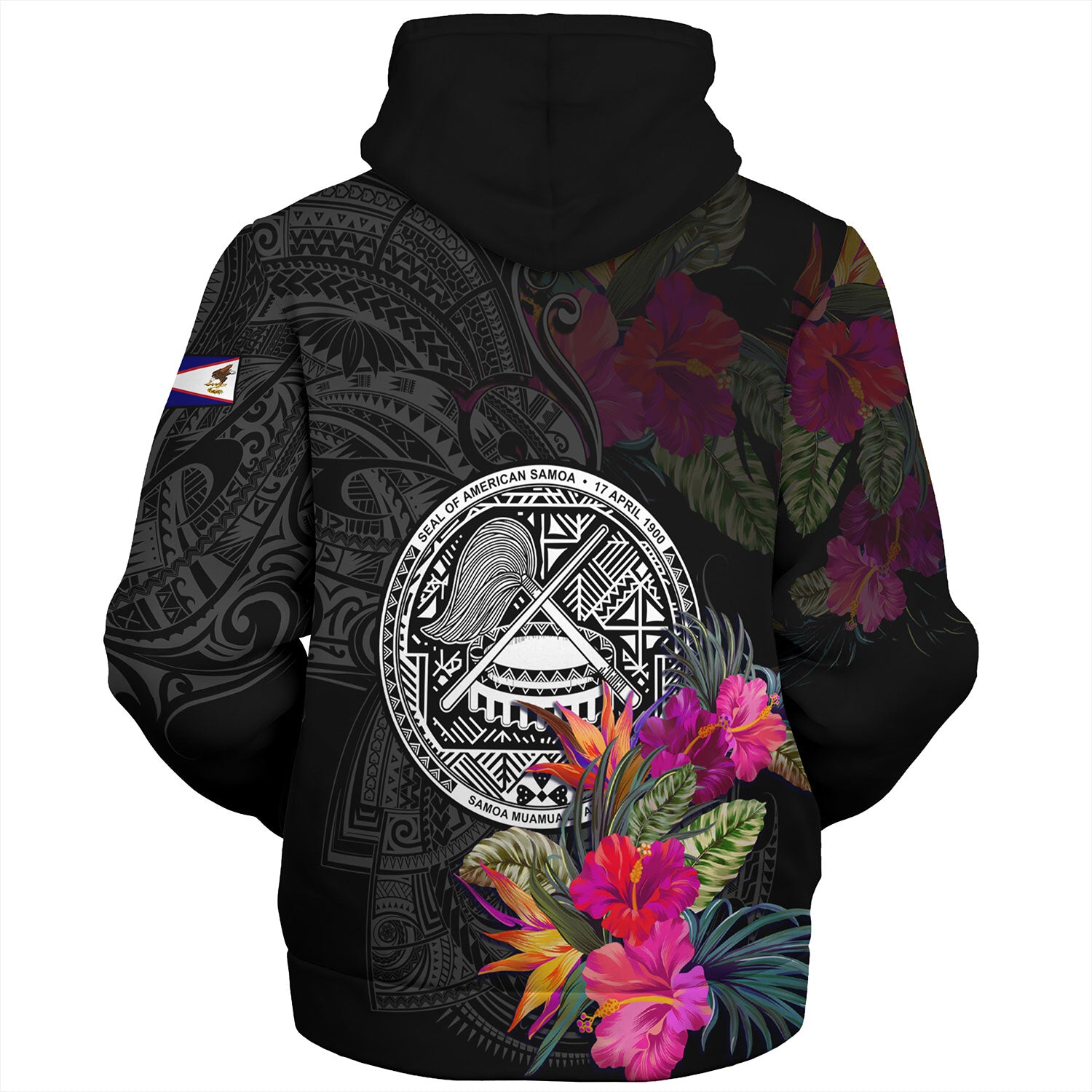 American Samoa Sherpa Hoodie Custom Polynesian Pattern Tropical Floral Design