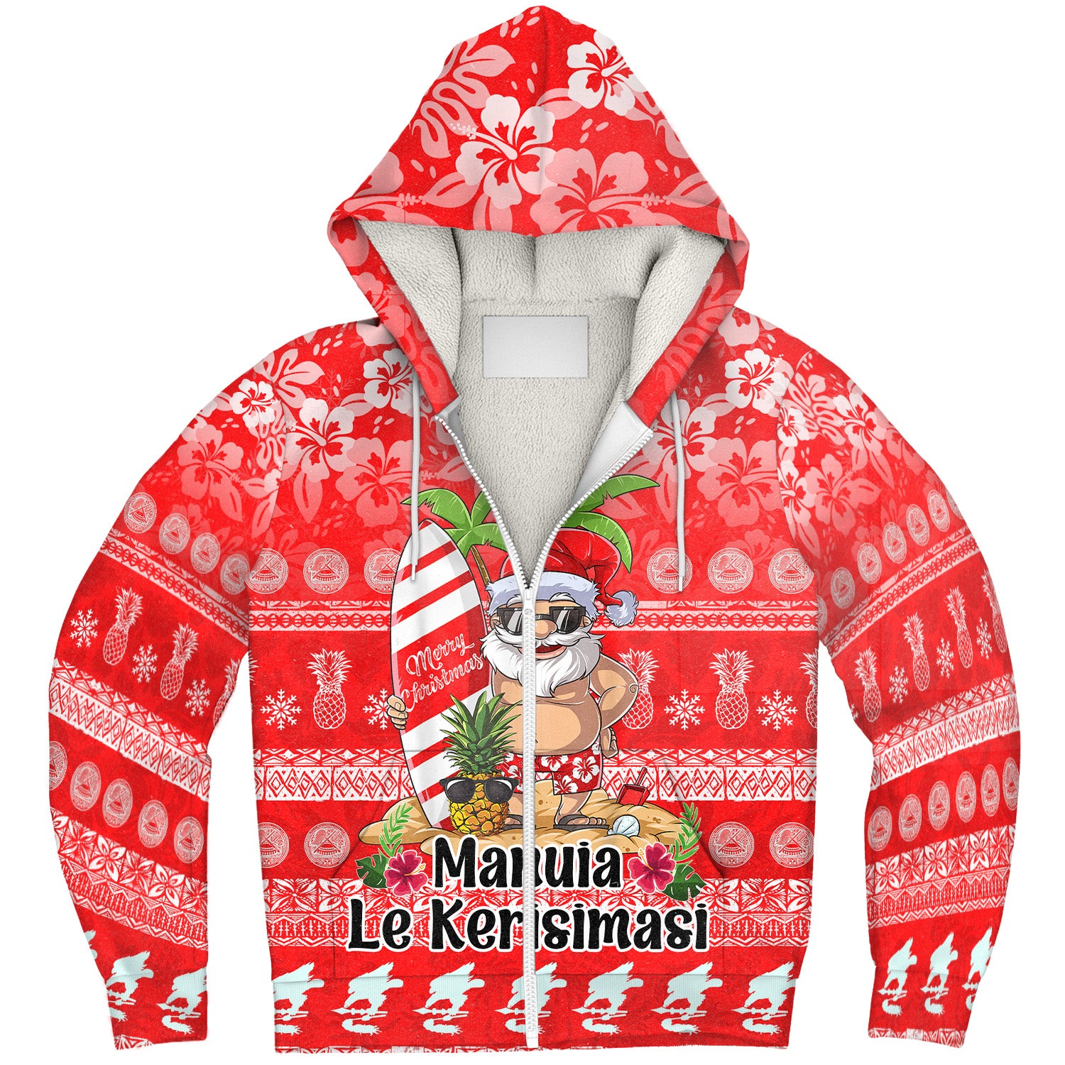 American Samoa Sherpa Hoodie Manuia Le Kerisimasi Tropical Xmas Patterns