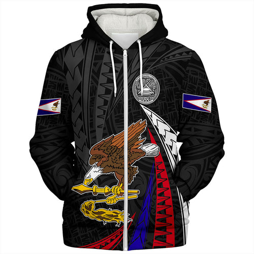 American Samoa Sherpa Hoodie Polynesia Tribal Wave