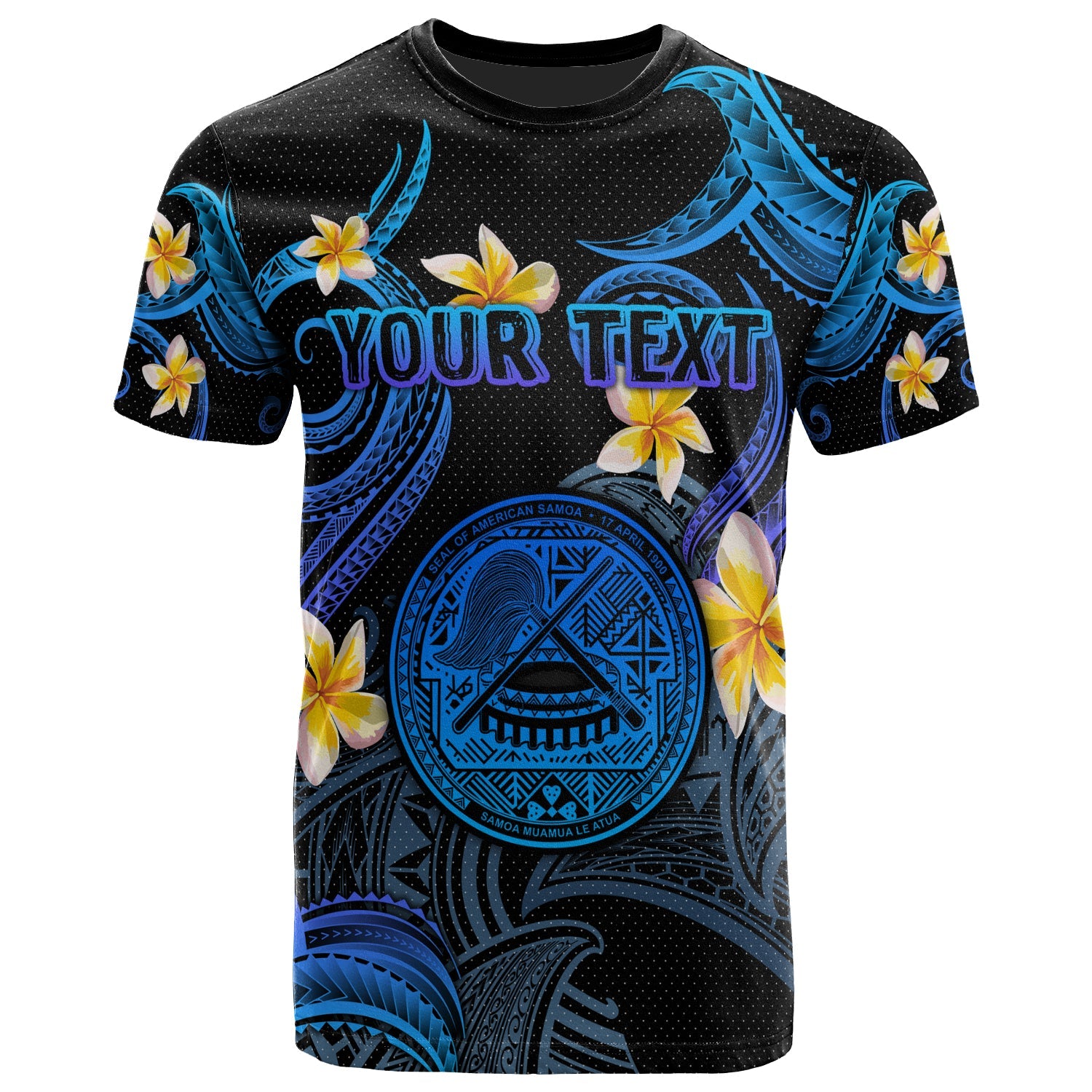 American Samoa T-shirt - Custom Personalised Polynesian Waves with Plumeria Flowers (Blue)