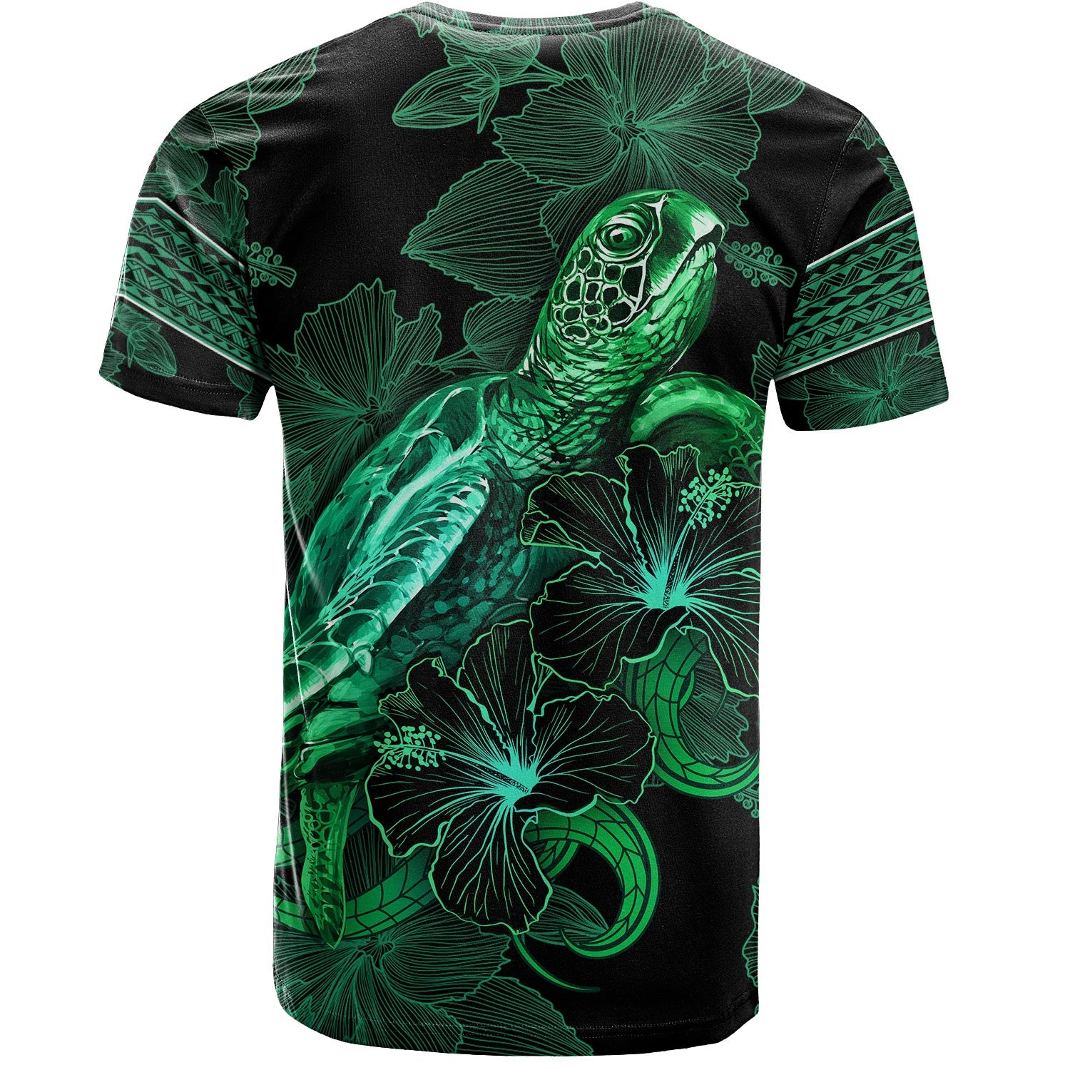 American Samoa T-Shirt Sea Turtle With Blooming Hibiscus Flowers Tribal Green