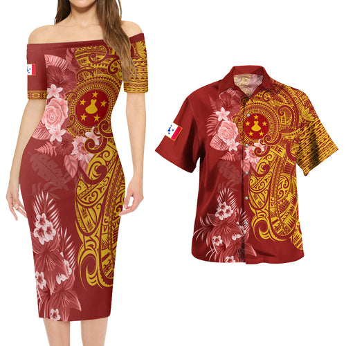 Austral Islands Combo Short Sleeve Dress And Shirt Polynesian Tropical Plumeria Tribal Red