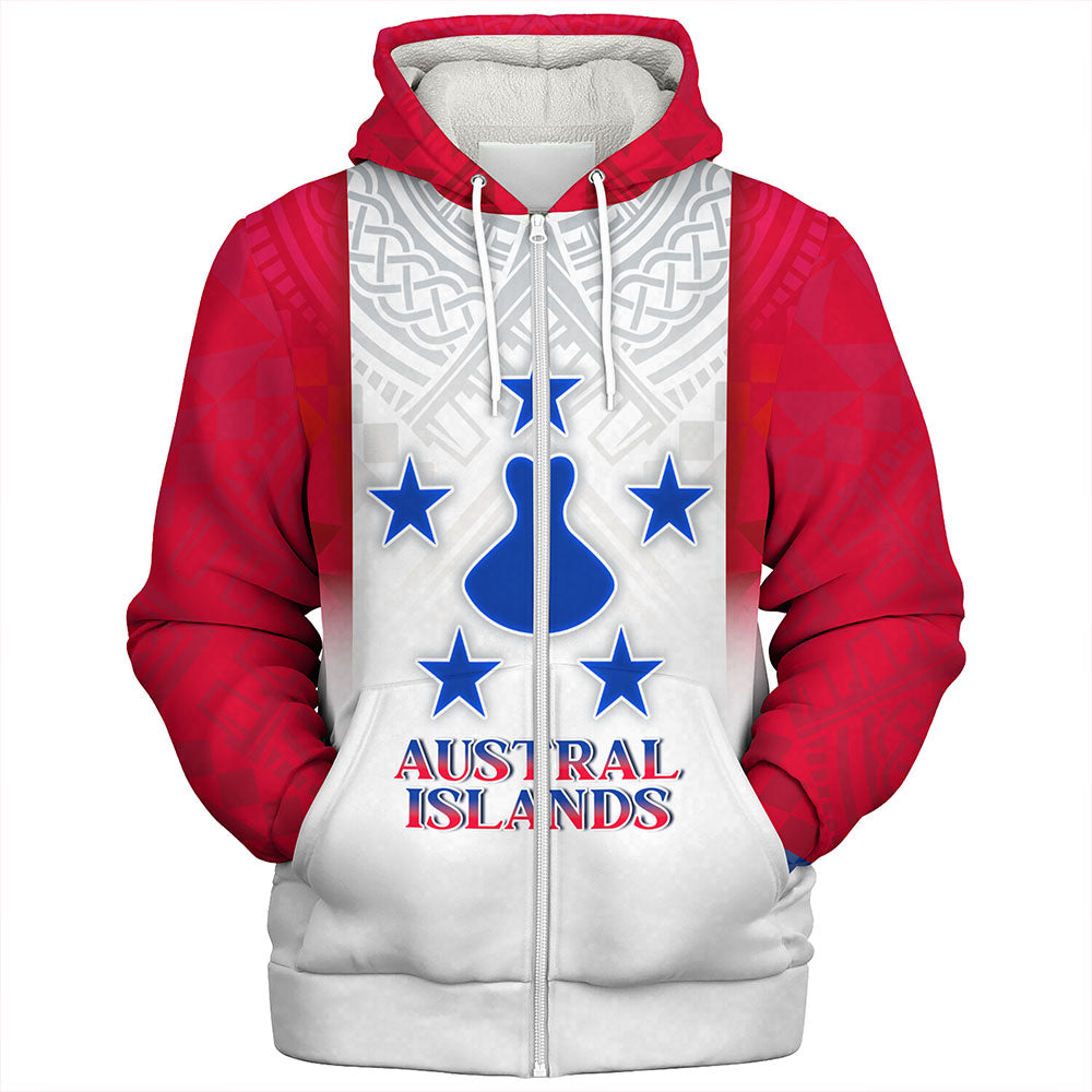 Austral Islands Sherpa Hoodie Flag Color With Traditional Patterns