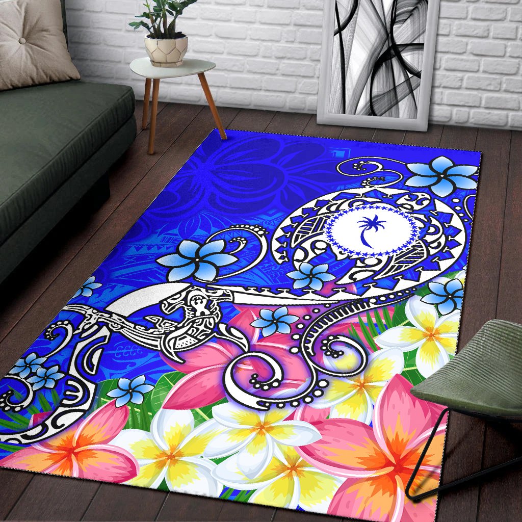 Chuuk Area Rug - Turtle Plumeria (Blue)