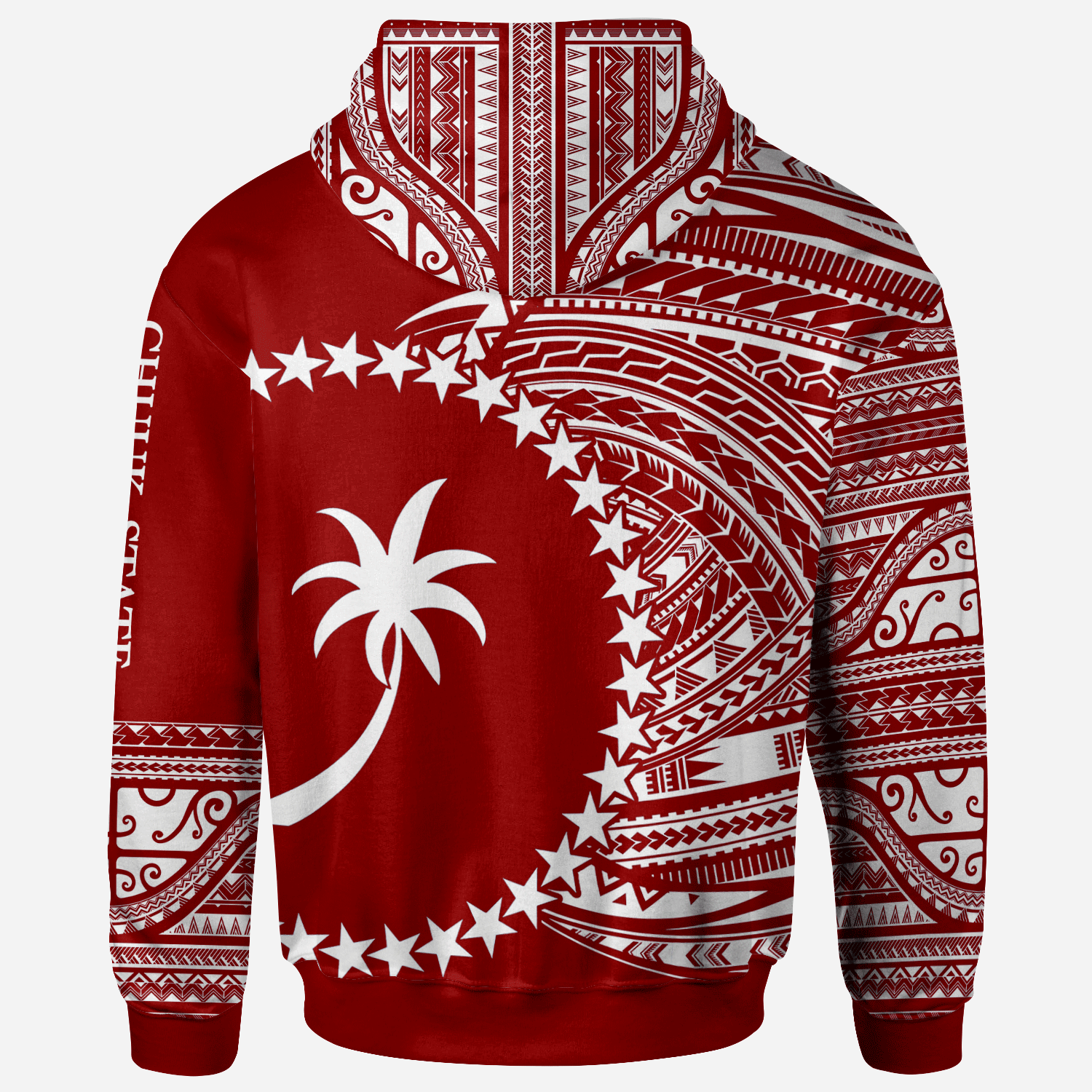 Chuuk Hoodie - Micronesia White Red Patterns With Coat Of Arms