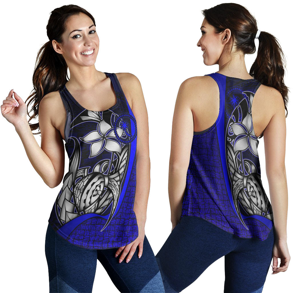 Chuuk Micronesia Women Racerback Tank Blue - Turtle With Hook