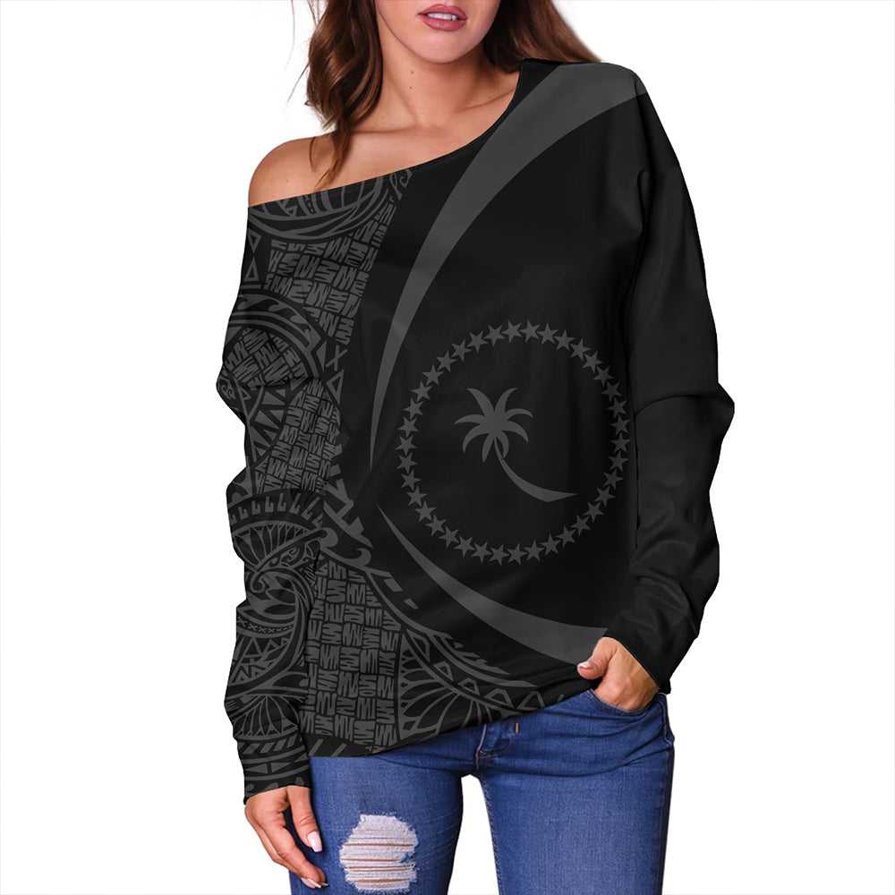 Chuuk Off Shoulder Sweatshirt Coat Of Arm Lauhala Gray Circle