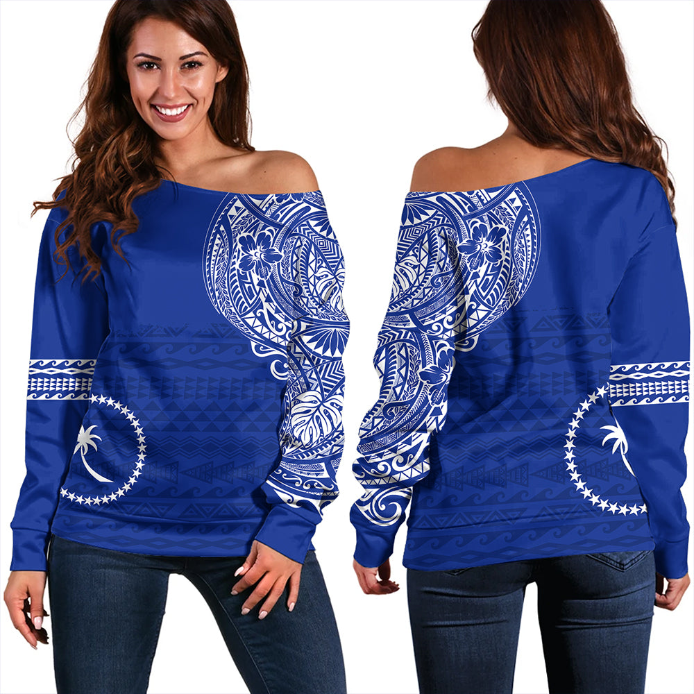 Chuuk Off Shoulder Sweatshirt Polynesian Flag With Coat Of Arms