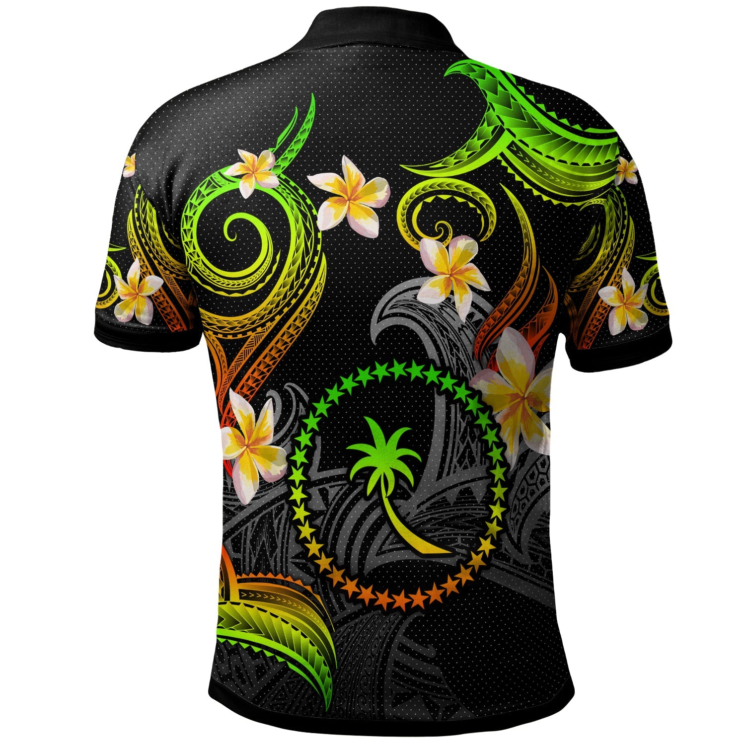 Chuuk Polo Shirt - Custom Personalised Polynesian Waves with Plumeria Flowers (Reggae)