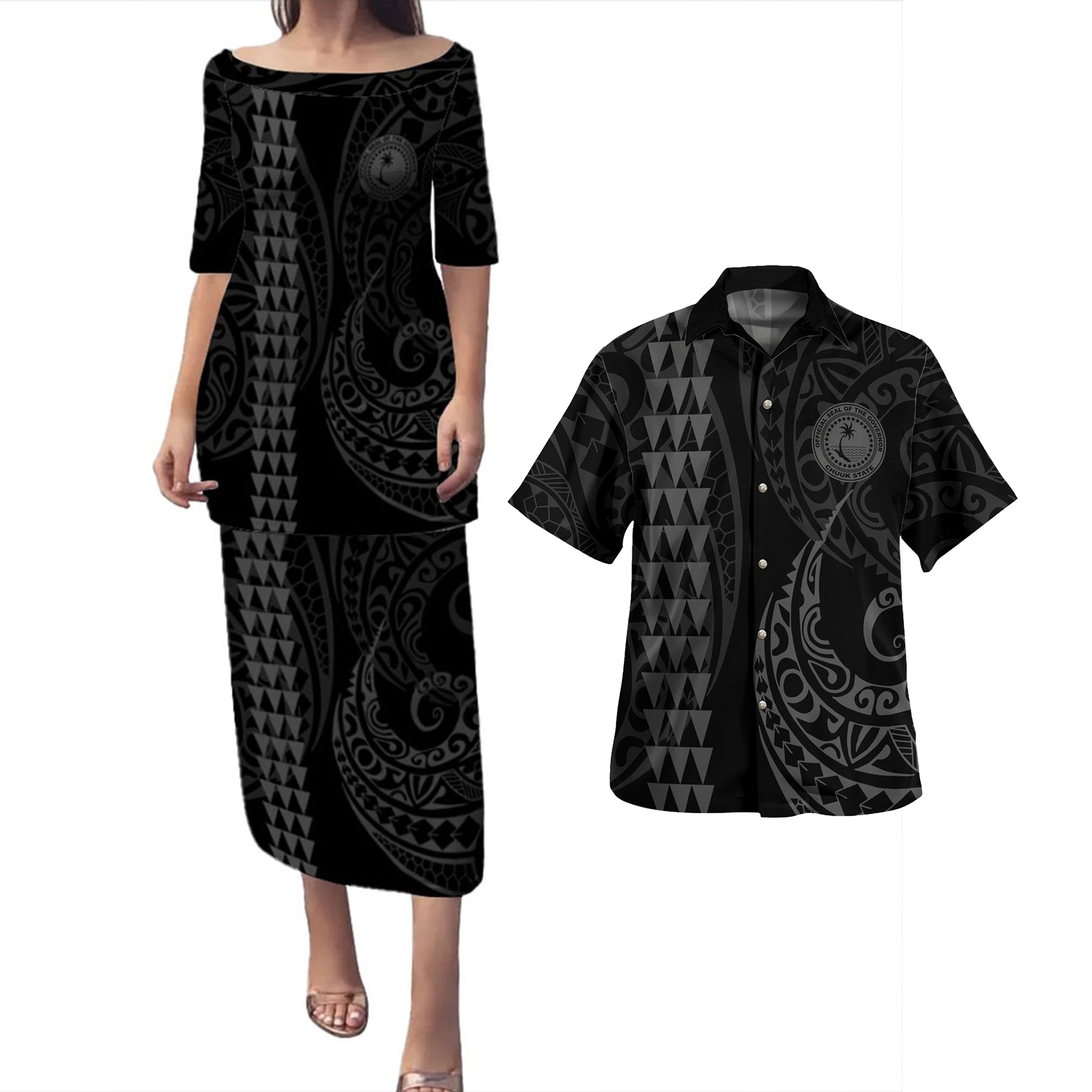 Chuuk State Combo Puletasi And Shirt Kakau Style Grey