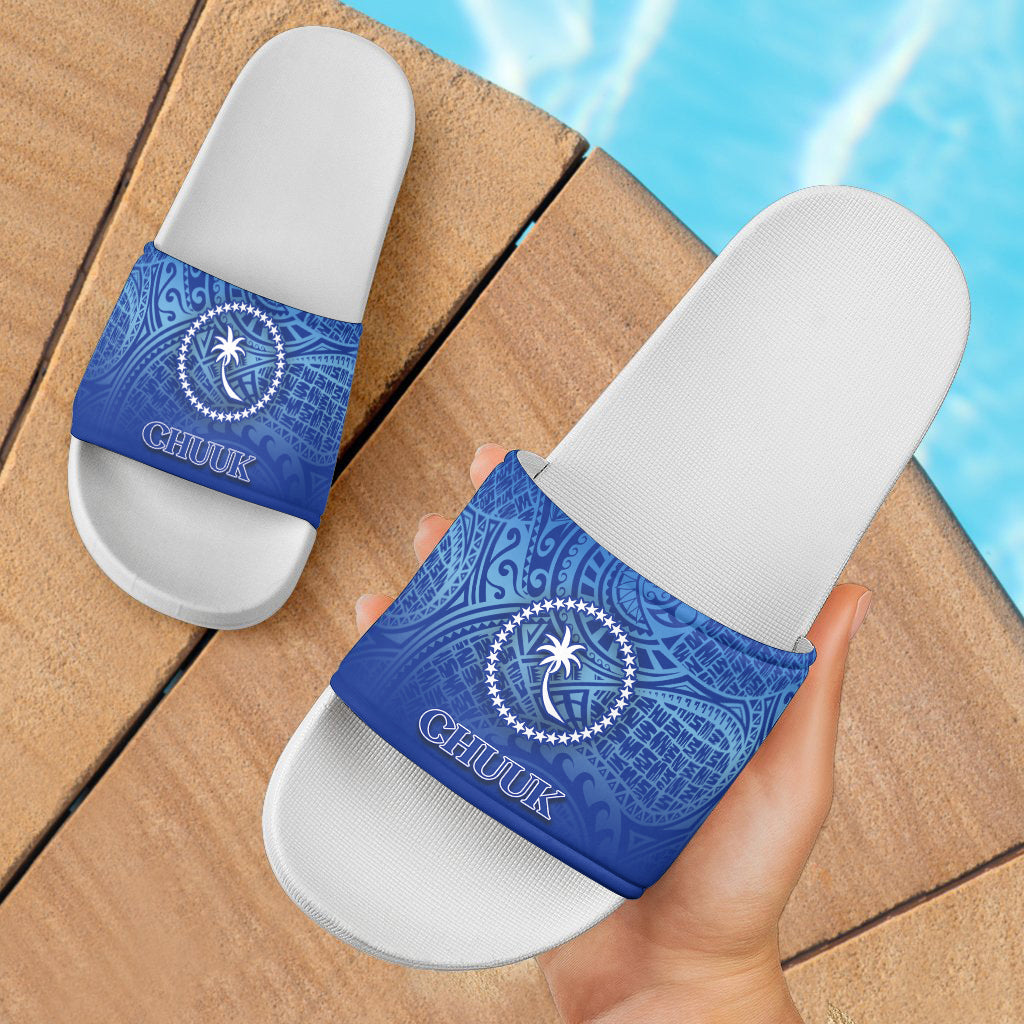 Chuuk State Flag Color With Traditional Patterns Slide Sandals