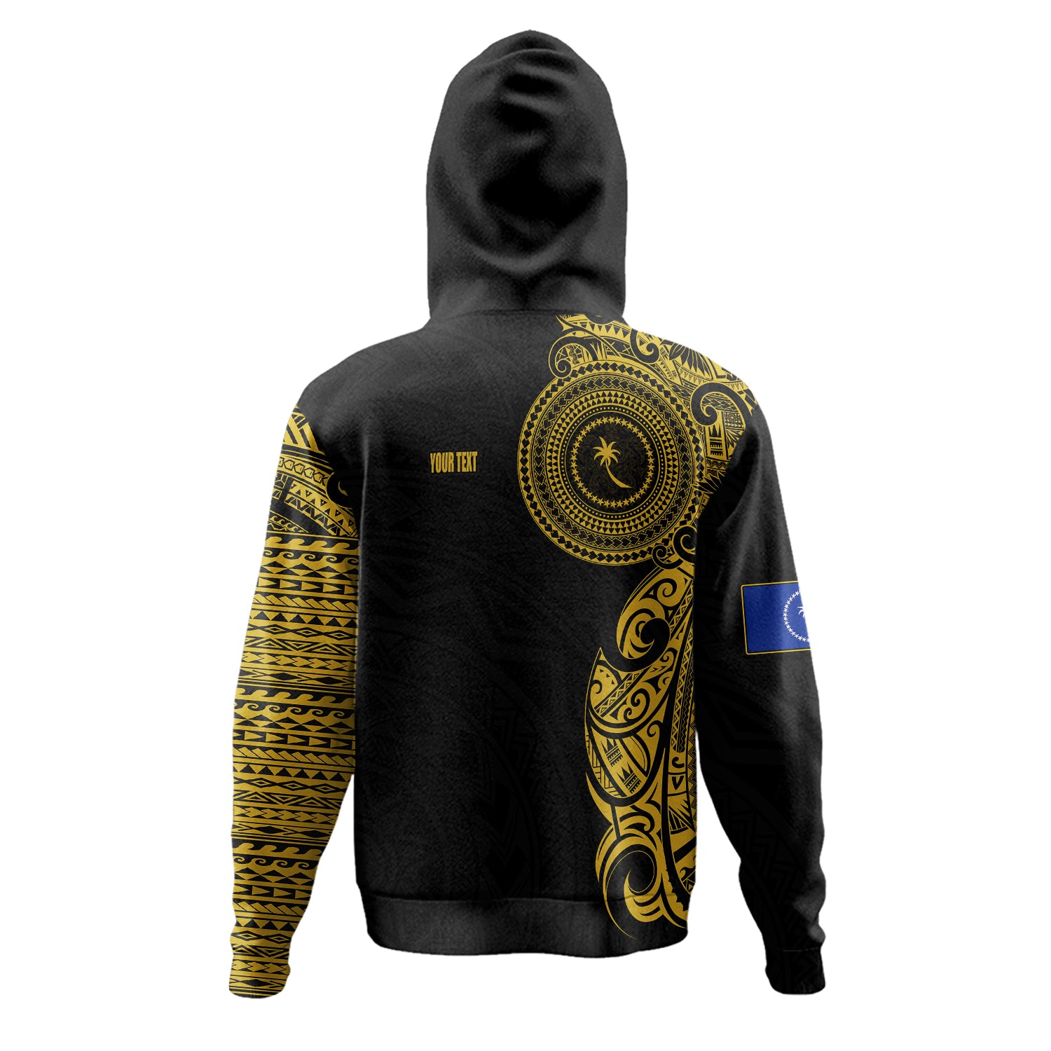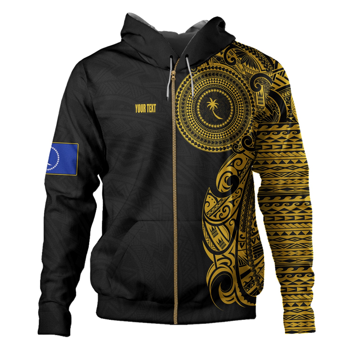 Chuuk State Hoodie Custom Polynesian Half Sleeve Gold Tattoo With Seal Black