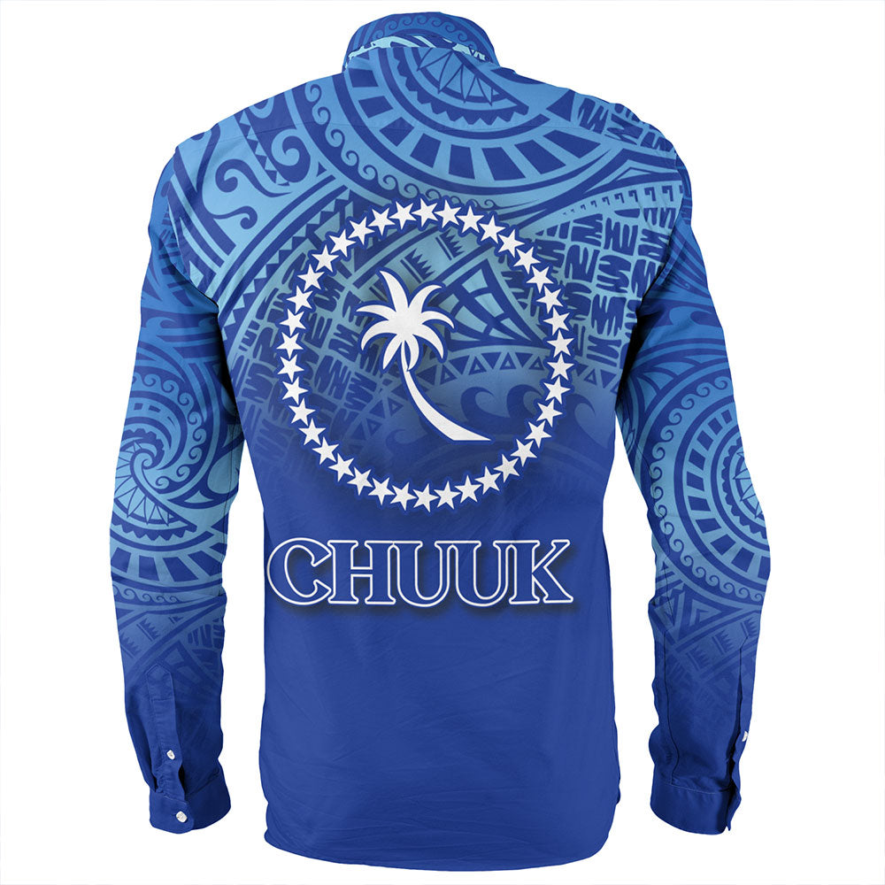 Chuuk State Long Sleeve Shirt Flag Color With Traditional Patterns
