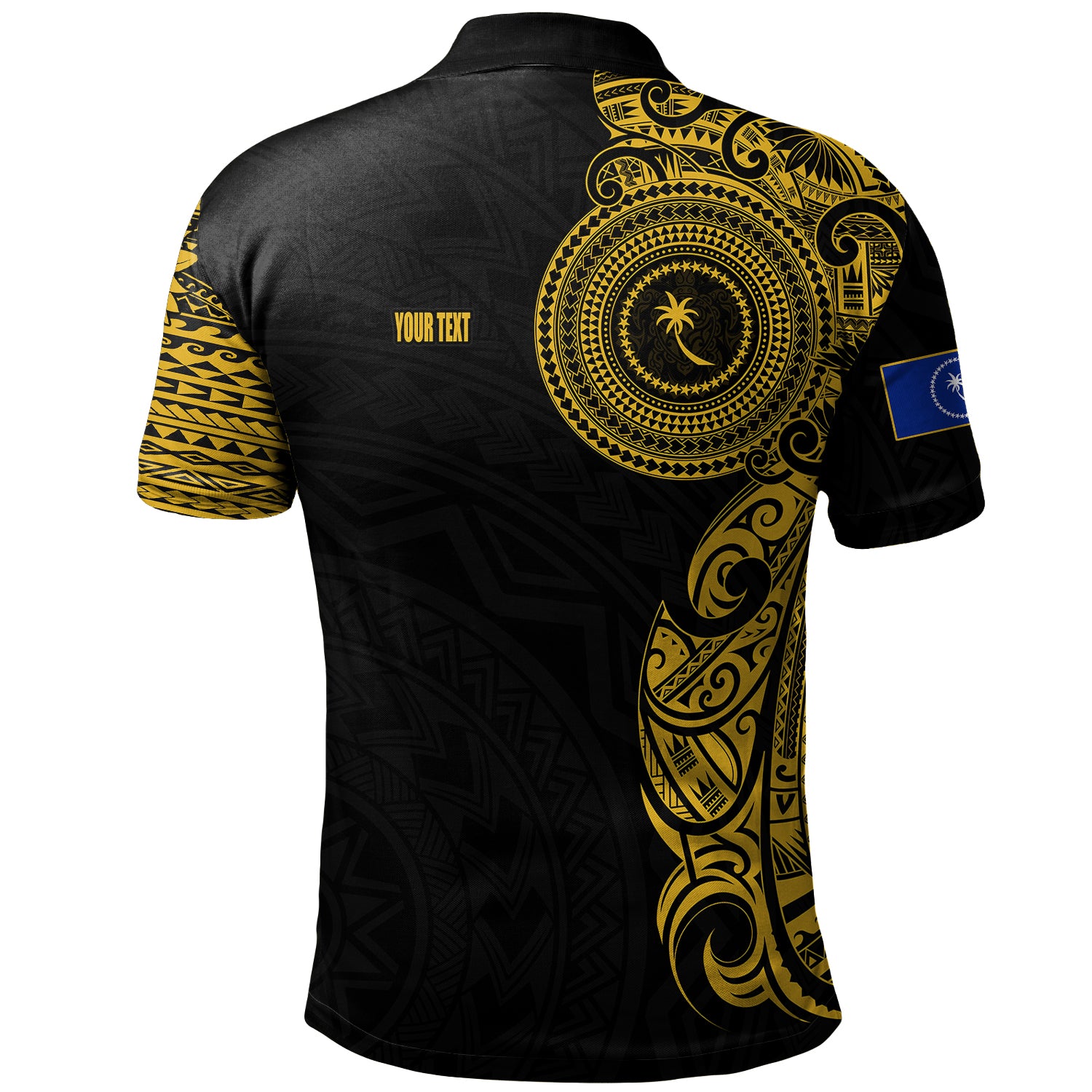 Chuuk State Polo Shirt Custom Polynesian Half Sleeve Gold Tattoo With Seal Black