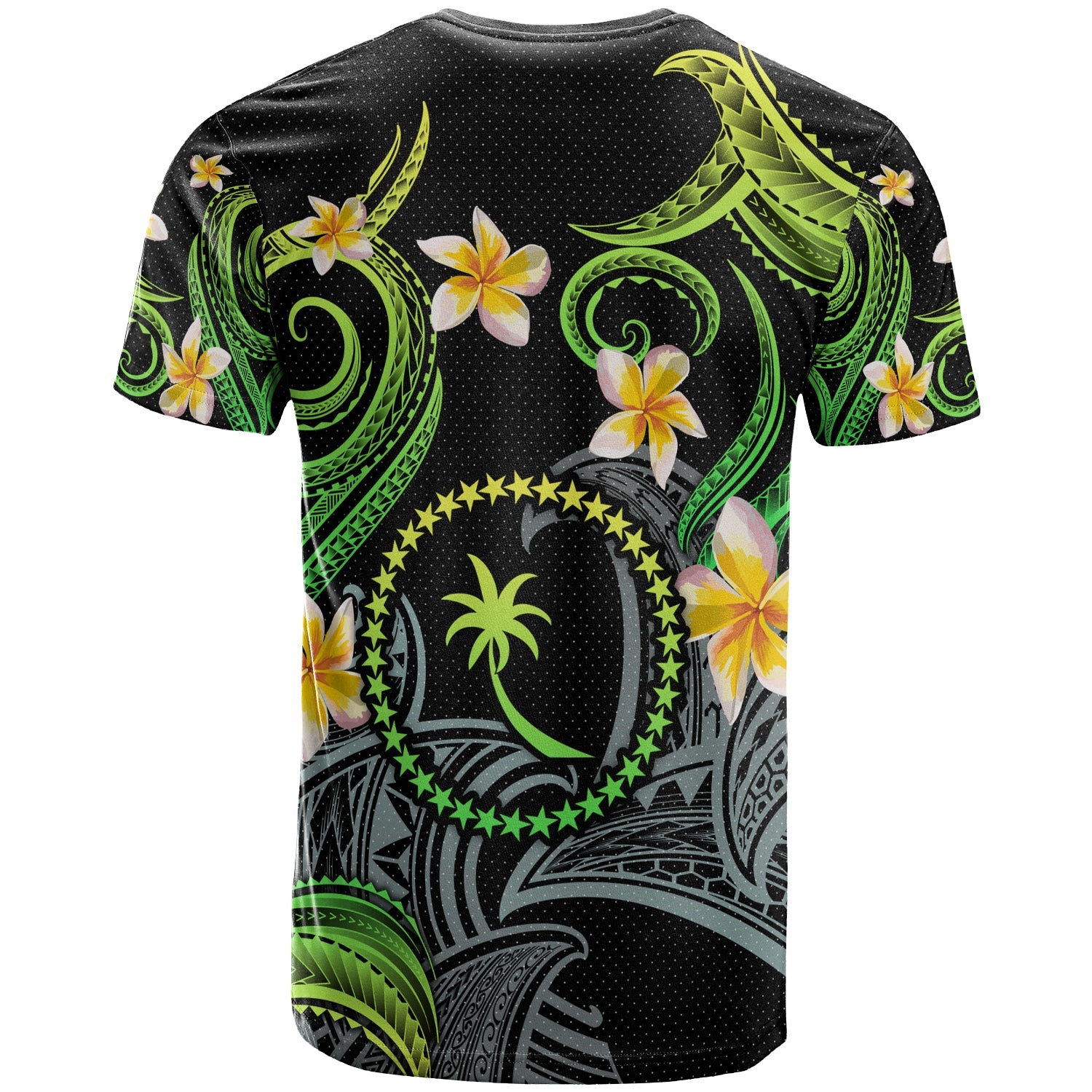 Chuuk T-shirt - Custom Personalised Polynesian Waves with Plumeria Flowers (Green)