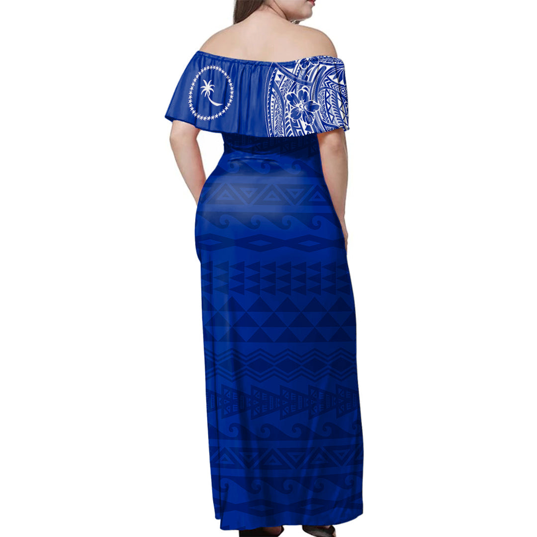 Chuuk Woman Off Shoulder Long Dress Polynesian Flag With Coat Of Arms