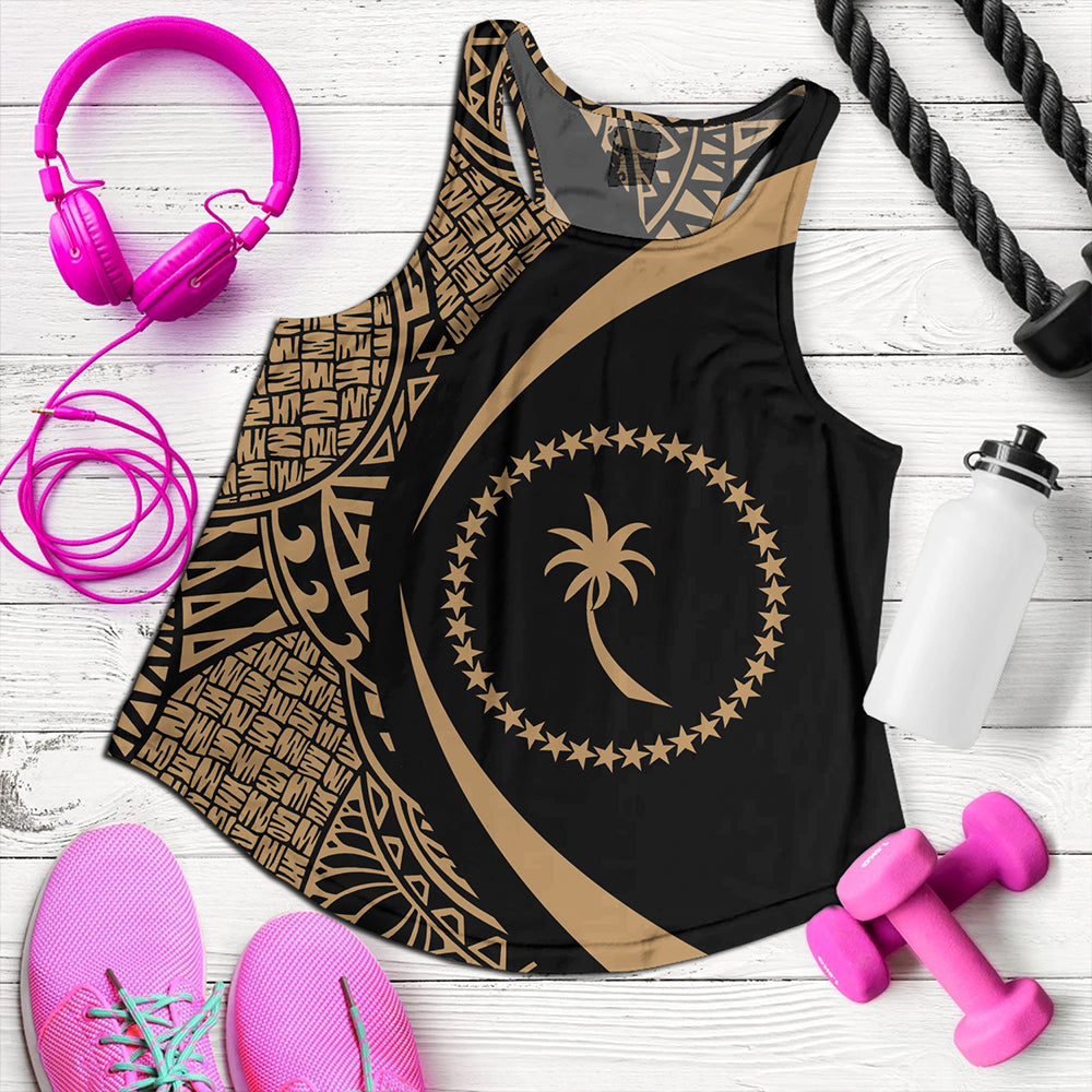 Chuuk Women Tank Coat Of Arm Lauhala Gold Circle