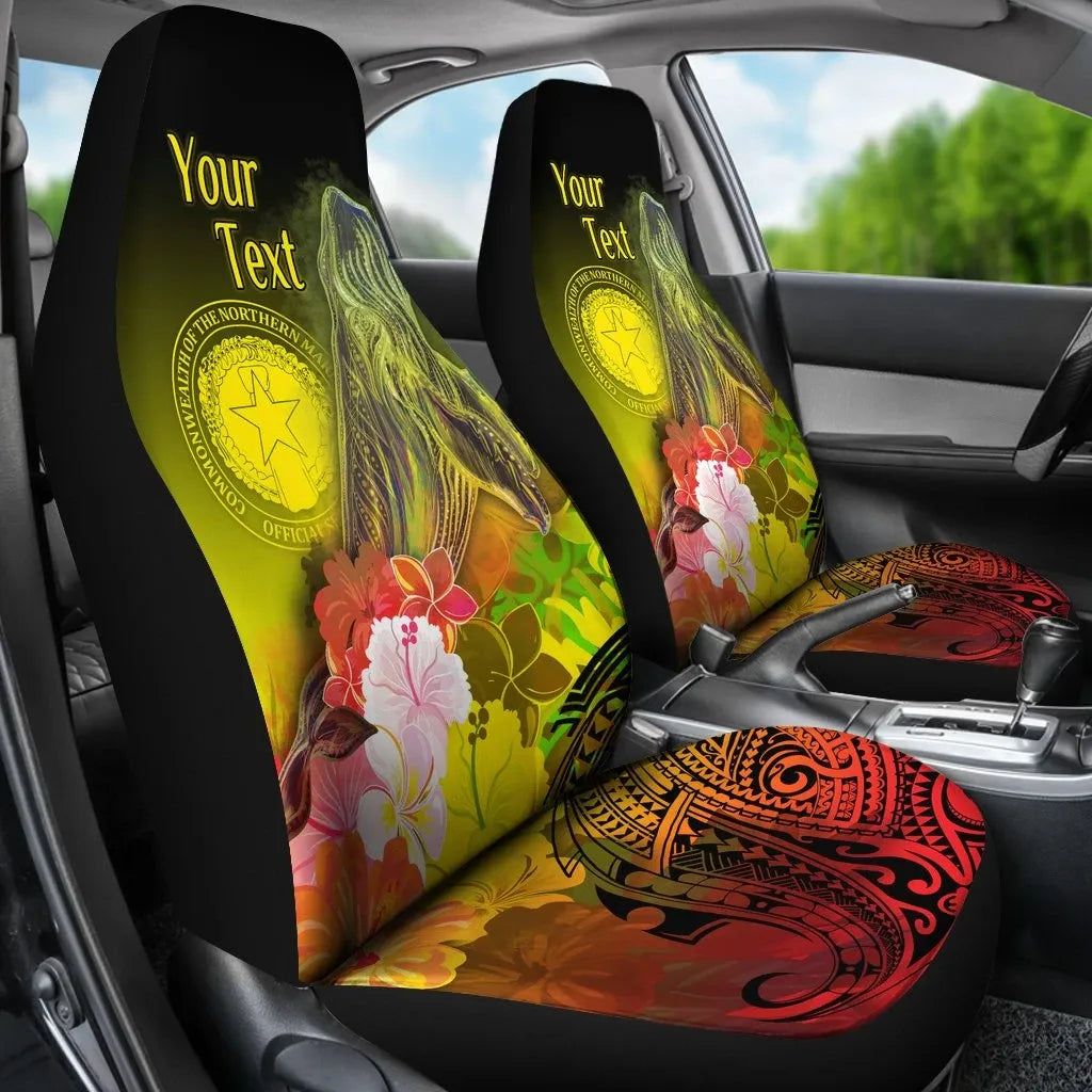 CNMI Custom Personalised Car Seat Covers - Humpback Whale with Tropical Flowers (Yellow)