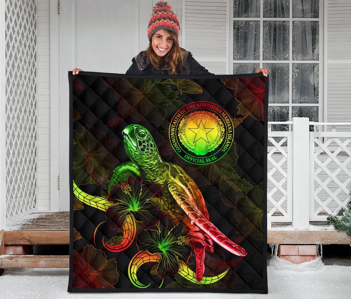 CNMI Polynesian Premium Quilt - Turtle With Blooming Hibiscus reggae