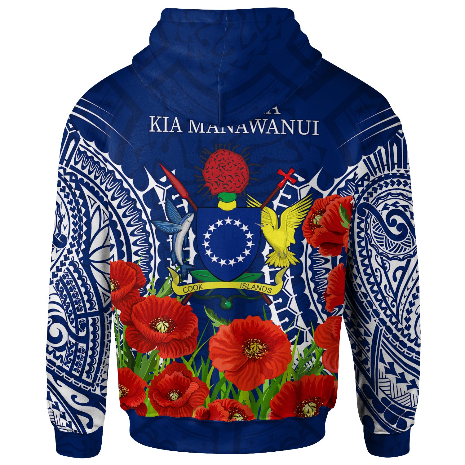 Cook Islands Anzac Hoodie - Lest We Forget Polyneisnan Tribal Pattern Poppy Flower