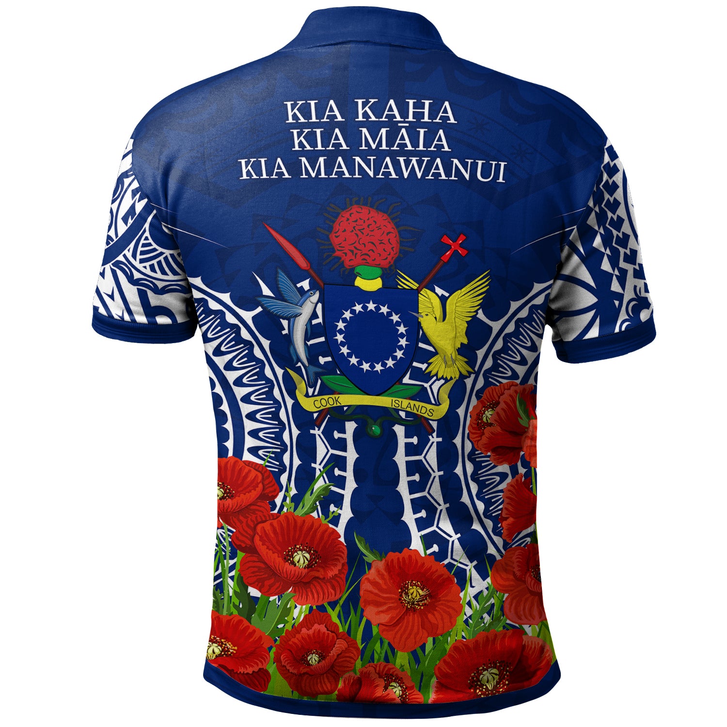 Cook Islands Anzac Polo Shirt - Lest We Forget Polyneisnan Tribal Pattern Poppy Flower