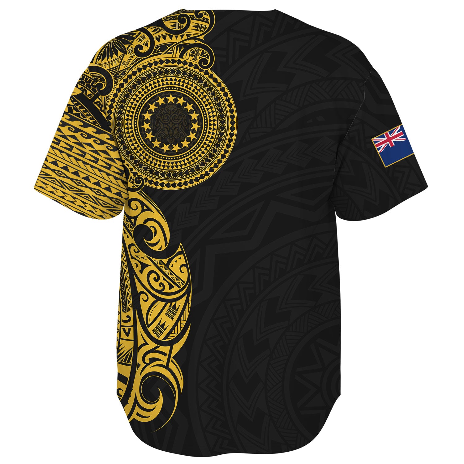 Cook Islands Baseball Shirt Custom Polynesian Half Sleeve Gold Tattoo With Seal Black