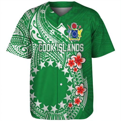 Cook Islands Baseball Shirt Plumeria Flowers Tribal Motif Design