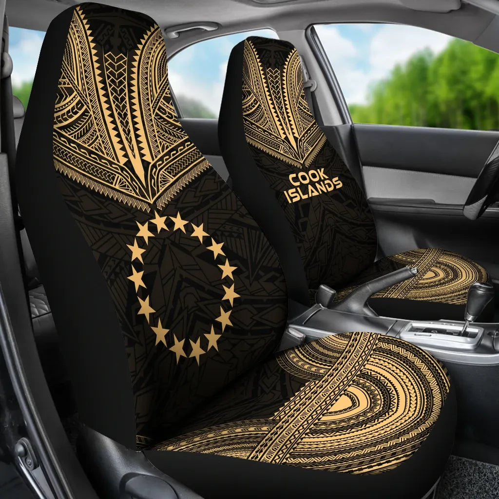 Cook Islands Car Seat Cover - Cook Islands Flag Polynesian Chief Tattoo Gold Version